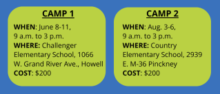 In 2026, two camps — one in June and one in August — will be offered in Livingston County! These camps are open to EVERYONE in grades 2 through 5 — you do not need to be a resident of the host school district or Livingston County to attend.